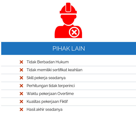 Kami terdaftar sebagai badah hukum (PT) , serta memiliki sertifikat keahlian di bidang jasa konstruksi (SKA)
